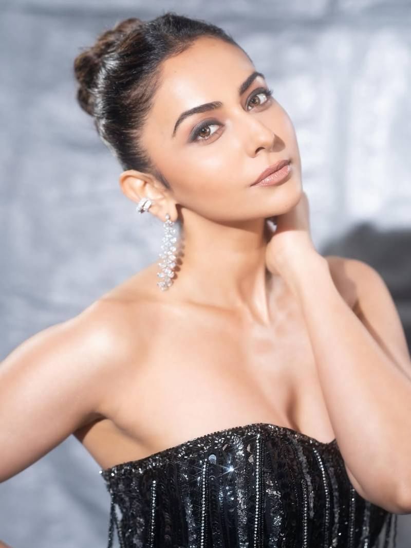 रकुल ने तस्वीरों के साथ कैप्शन लिखा है, 'सपनों में लिपटी हुई चांदी सी चमक'