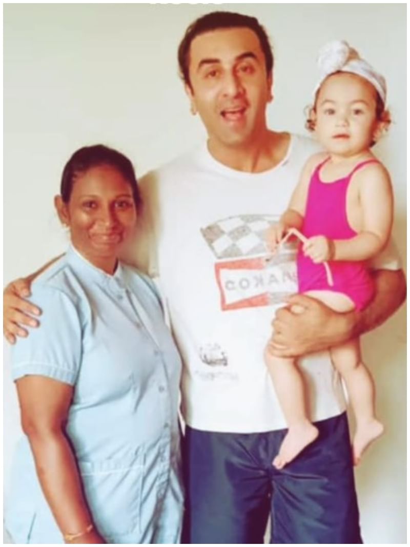 इस तस्वीर में रणबीर, राहा और एक स्टाफ मेंबर के साथ पोज देते हुए नजर आ रहे हैं