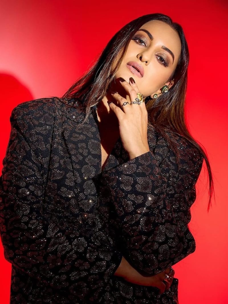 सोनाक्षी ने आज ब्लैक शाइनिंग कोट-पेंट में शानदार पोज दिए हैं