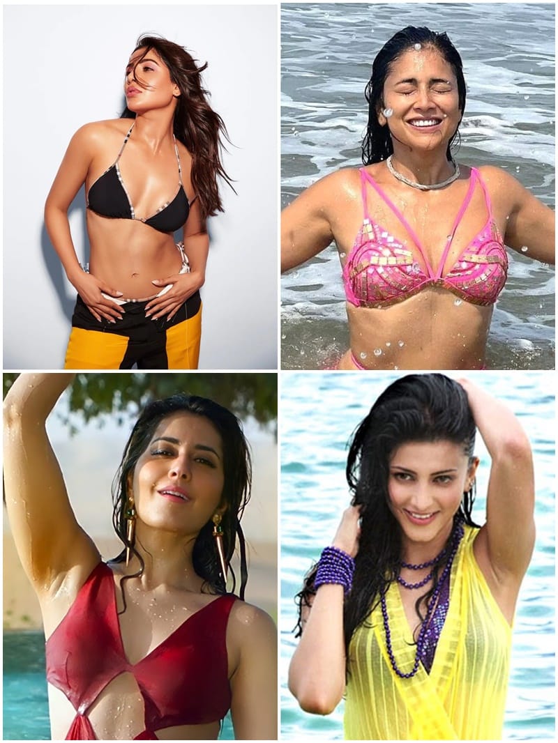 बिकिनी में कहर ढाती हैं साउथ की ये अभिनेत्रियां स्वीमिंग पूल में गुलाबी रंग की बिकिनी में नजर आईं रकुल प्रीत सिंह मशहूर एक्ट्रेस सामंथा रुथ प्रभु की बिकिनी टॉप वाली यह फोटो काफी चर्चा में रही थी अदाकारा राशी खन्ना आए दिन फैंस के साथ बिकिनी तस्वीरें शेयर करती रहती हैं अभिनेत्री श्रुति हासन की बिकिनी फोटोज अक्सर इंटरनेट पर वायरल होती रहती हैं अदाकार श्रेया सरन अक्सर अपने बोल्ड अंदाज से फैंस का ध्यान खींच लेती हैं। अभिनेत्री काजल अग्रवाल भी अपने बिकिनी लुक को लेकर चर्चा में रहती हैं एक्ट्रेस हंसिका मोटवानी भी आए दिन बिकिनी में अपना टोन्ड फिगर फ्लॉन्ट करती रहती हैं हंसिका मोटवानी