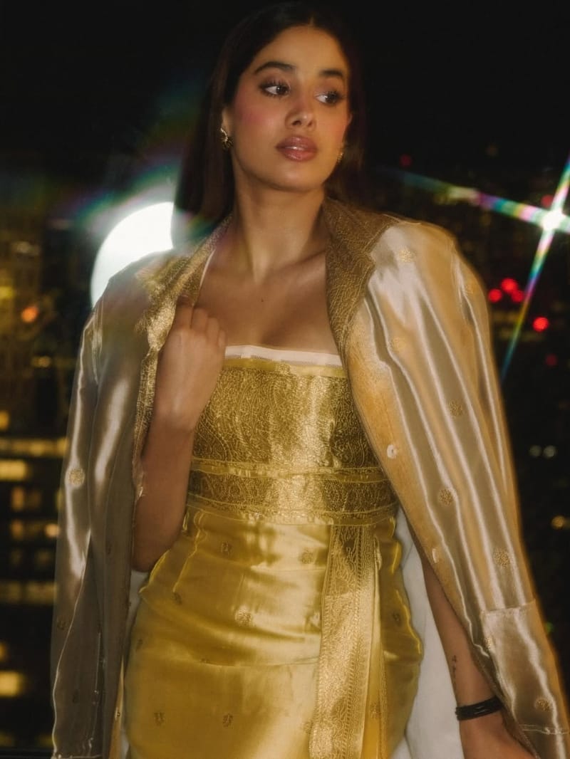 इस लेटेस्ट लुक में जान्हवी गोल्डन रंग की ड्रेस में नजर आ रही हैं