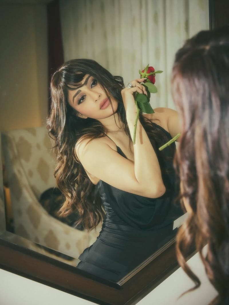 इस ब्लैक ड्रेस के साथ हाथ में गुलाब का फूल लिए नजर आईं मौनी