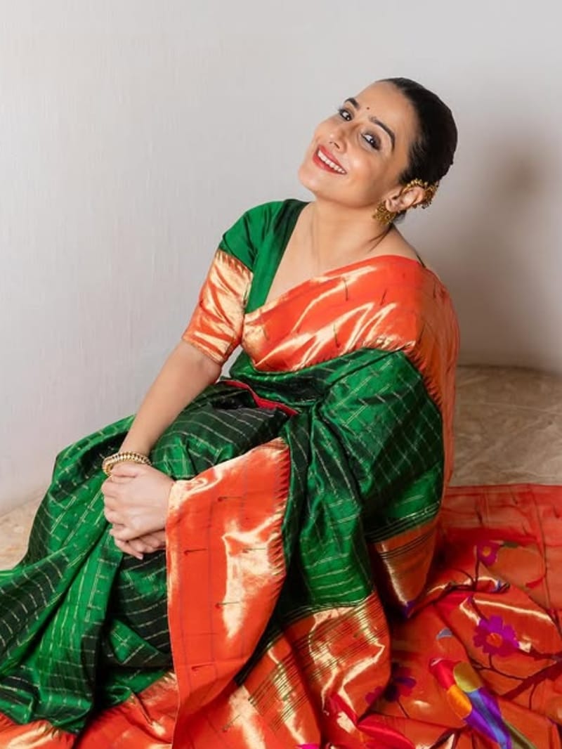 नवरात्र के खास अवसर पर विद्या बालन हर दिन एक साड़ी लुक अपने इंस्टाग्राम पर शेयर करती हैं।