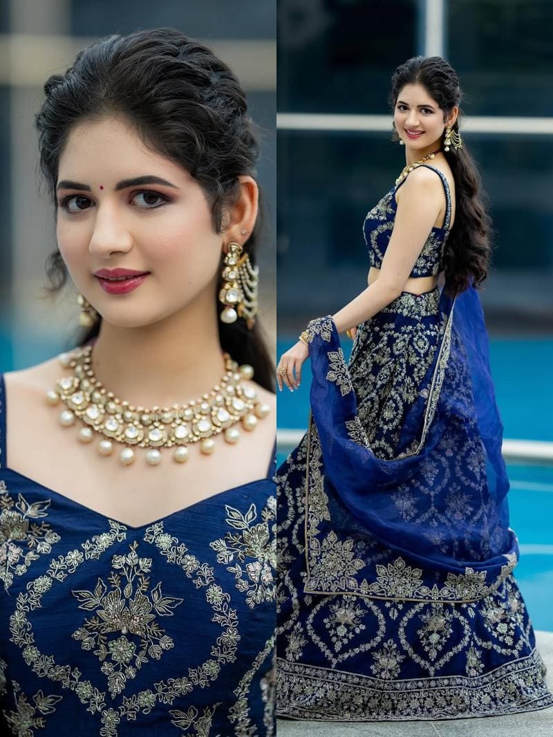 तस्वीरों में देखा जा सकता है कि उन्होंने नीले लहंगे में शानदार पोज दिए हैं।