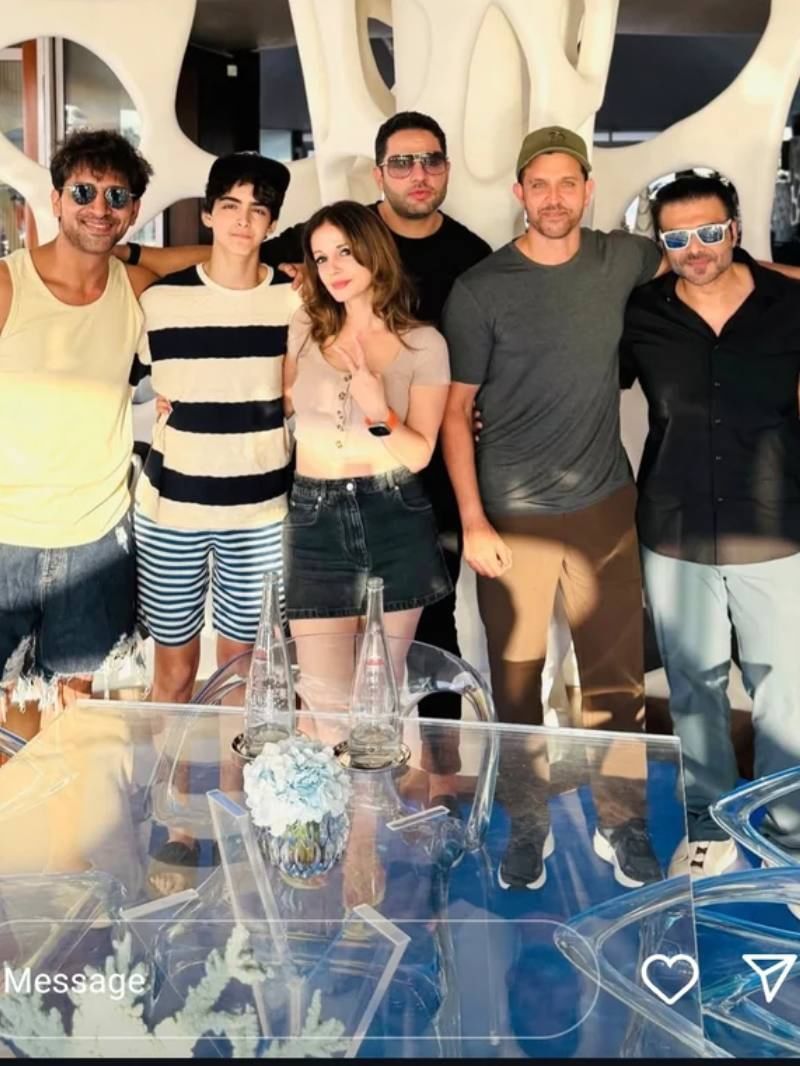 सुजैन खान ने इंस्टाग्राम पर एक तस्वीर शेयर की जिसमें वे अर्सलान, ऋतिक और उनके बेटे ऋदान और उदय चोपड़ा के साथ पोज दे रही हैं