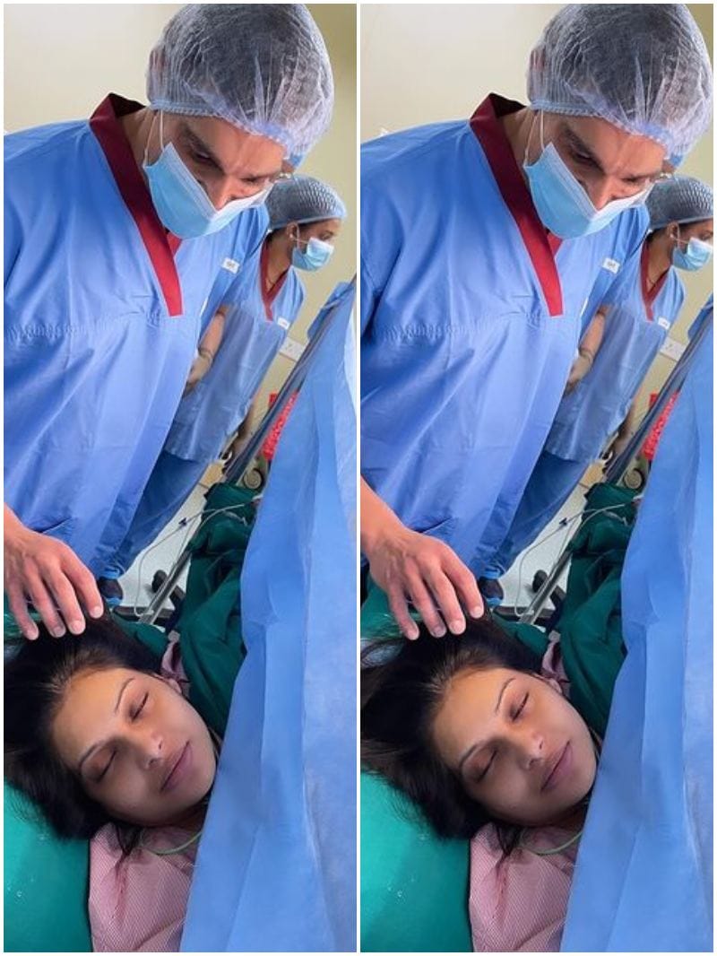 बिपाशा ने बेटी देवी के जन्म के दौरान की डिलीवरी रूम की तस्वीर साझा की है, जिसमें करण उनके साथ खड़े नजर आ रहे हैं