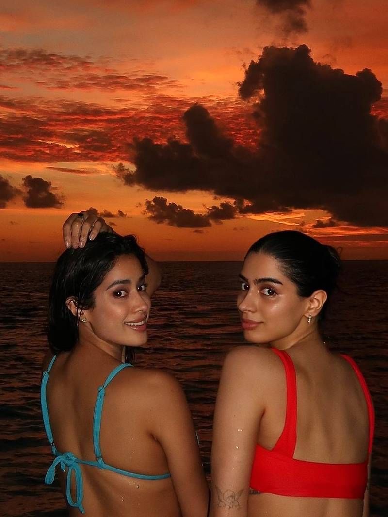 तस्वीरों में जान्हवी और खुशी को एक साथ सूर्यास्त को देखते हुए देखा जा सकता है