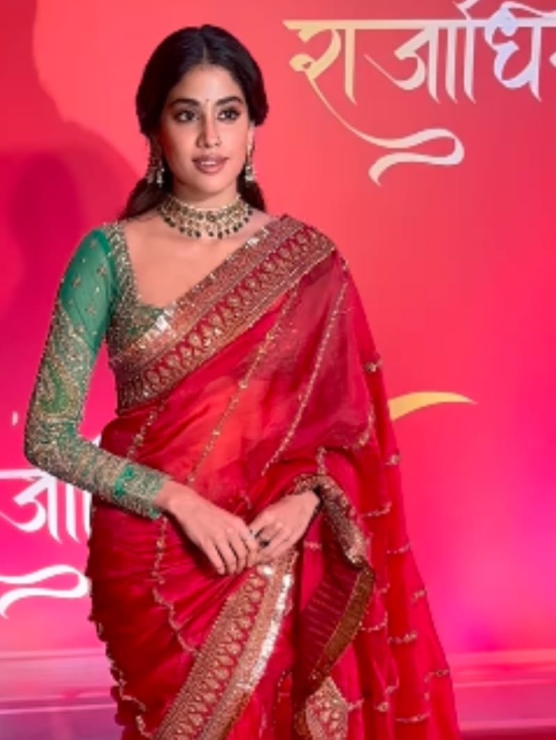 जान्हवी इस दौरान साड़ी और गहने से सजी हुई दिखाई दीं