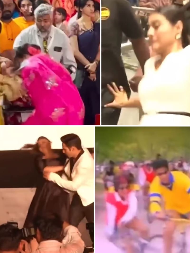 इस वीडियो क्लिप में काजोल सिक्योरिटी के बीच चलते-चलते गिर जाती हैं।