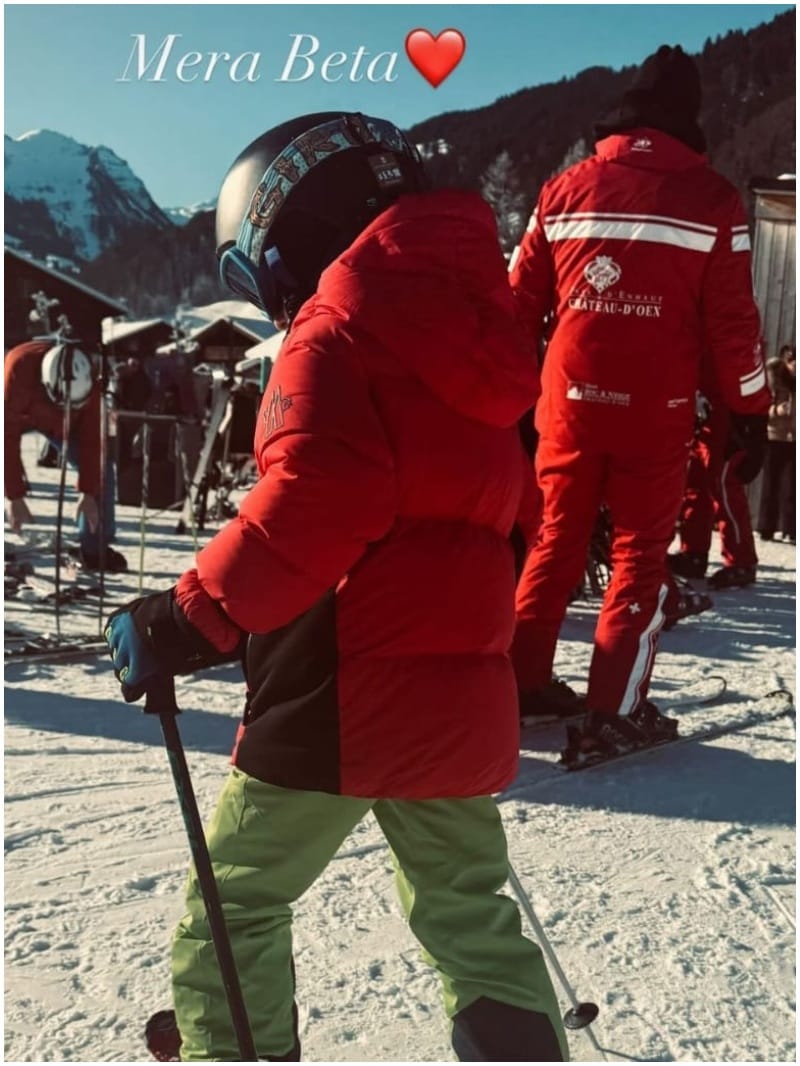 तस्वीरों में तैमूर स्कीवियर में सजे-धजे नजर आ रहे हैं, कैप्शन में करीना ने लिखा, "मेरा बेटा”