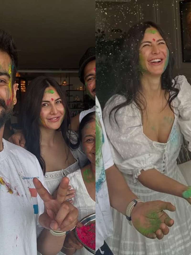 तस्वीरें शेयर करते हुए कटरीना कैफ ने लिखा है 'हमारी तरफ से आपको सबको हैप्पी होली'।