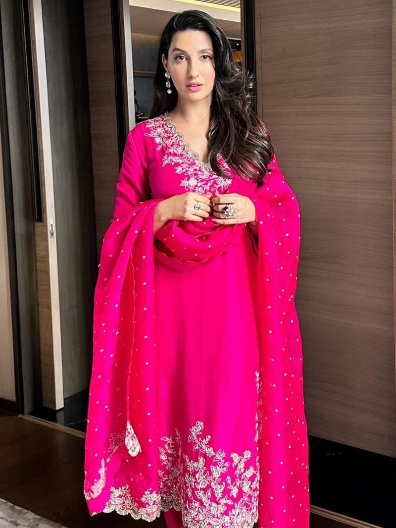 हाल ही में नोरा पिंक रंग के सूट में हसीन अदाएं दिखाती नजर आईं