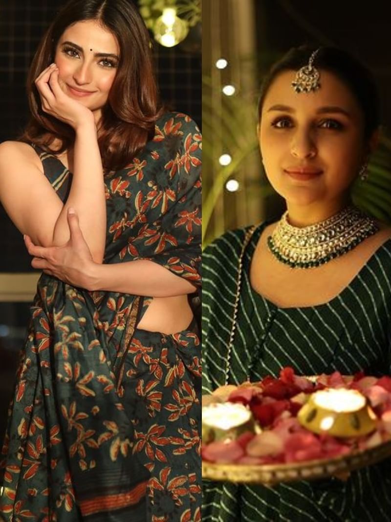 हरे रंग की ड्रेस और हाथों में पूजा की थाल लिए नजर आईं परिणीति चोपड़ा