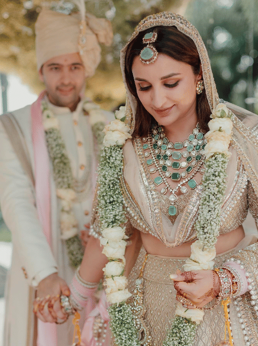परिणीति ने अपनी शादी के दौरान ग्रीन कलर के स्टोन से जड़ा हुआ हार पहना था