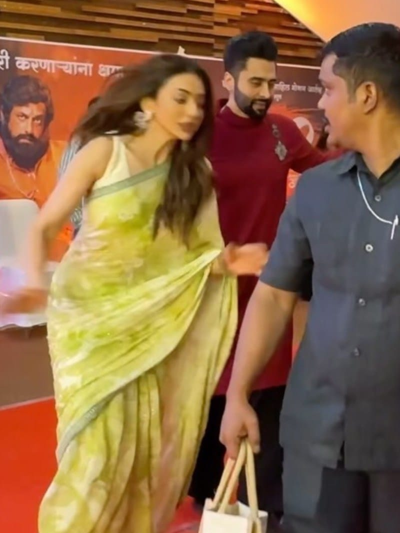 रकुल प्रीत सिंह शनिवार शाम को धर्मवीर 2 के ट्रेलर लॉन्च के दौरान फिसलकर गिरते-गिरते बचीं