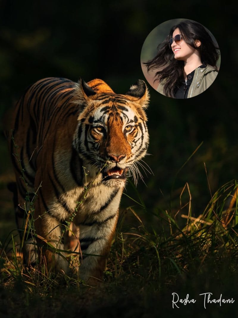इस तस्वीर में राशा थडानी ने एक बाघ की फोटो क्लिक की है, जो गुस्से में दिख रहा है।