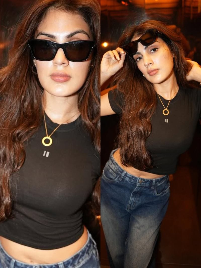 रिया ने जींस पैंट और ब्लैक क्रॉप टॉप में कई बेहतरीन पोज दिए हैं।