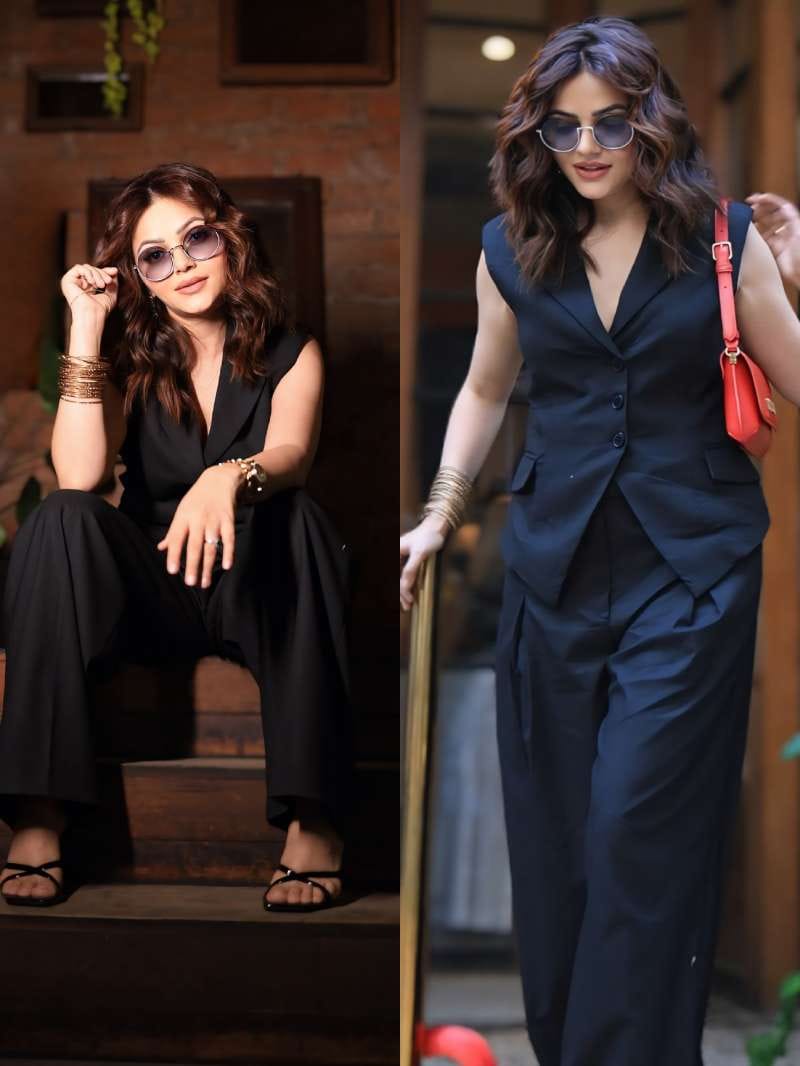रुबीना ने ब्लैक ड्रेस के साथ ब्लैक चश्मा लगाया और अपने बाल खुले छोड़े हैं।