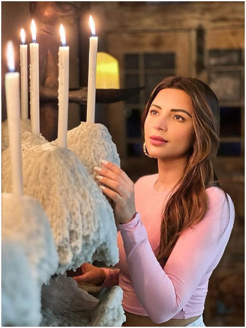 इन तस्वीरों में शमा जलती हुई मोमबत्तियों के पास खड़ी नजर आ रही हैं