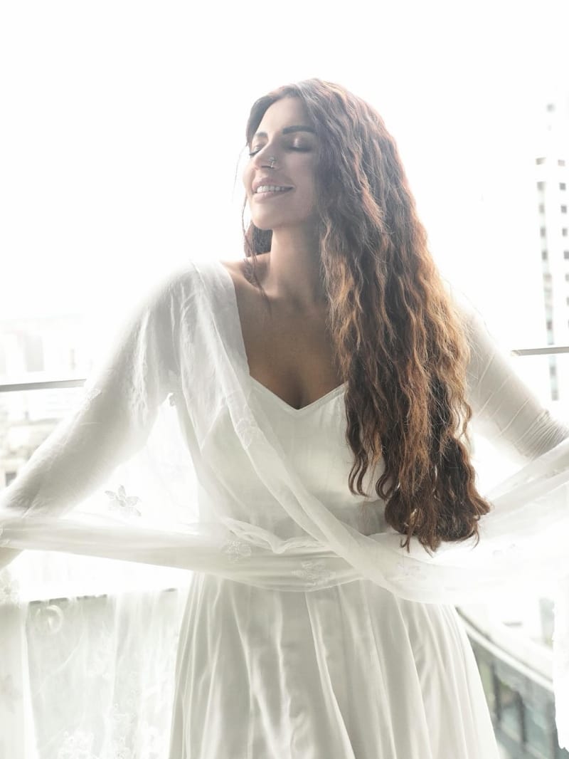 व्हाइट कलर के सूट में शमा का यह अवतार बेहद ही प्यारा नजर आया