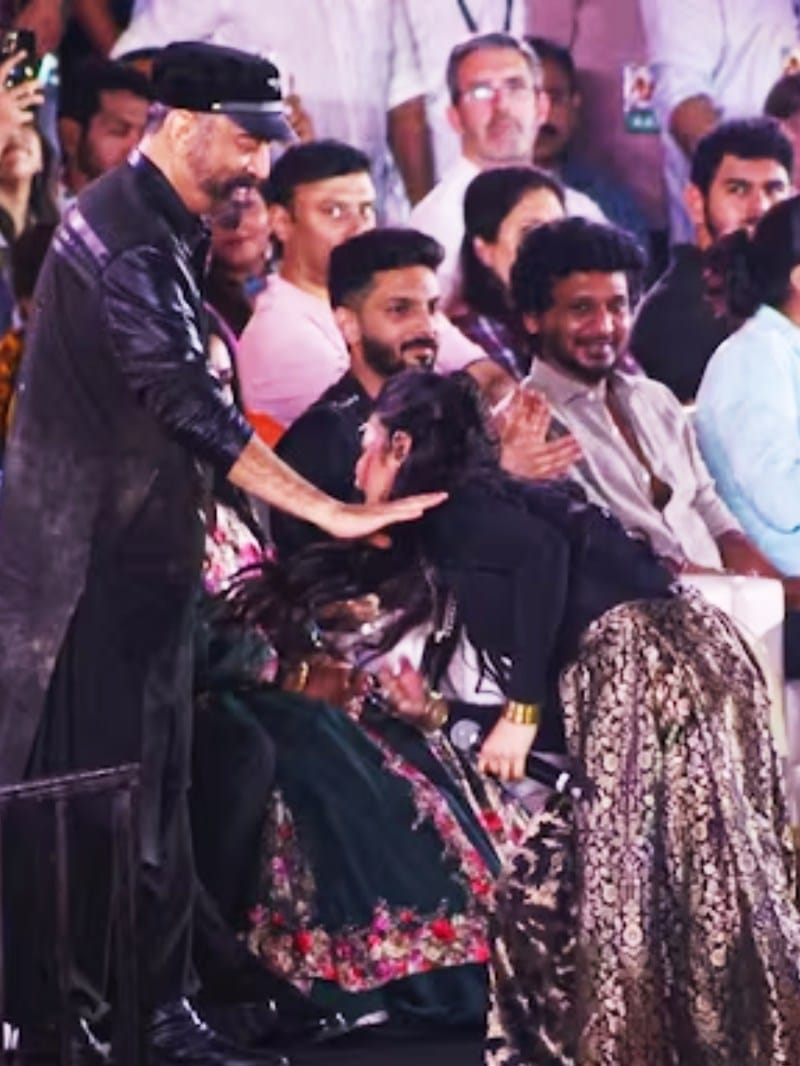 उन्होंने इंस्टाग्राम पर एक वीडियो शेयर किया, जिसमें उन्हें कमल हासन के पैरों को छूते और उन्हें कसकर गले लगाते हुए देखा जा सकता है