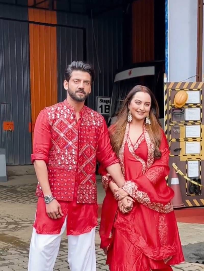 वहीं, जहीर भी लाल चमकीली पोशाक के साथ पत्नी सोनाक्षी के साथ ट्विनिंग करते दिखे