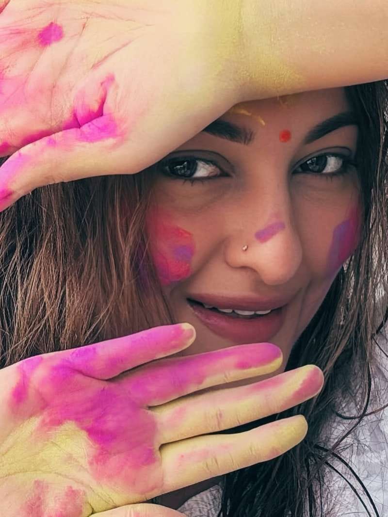 सोनाक्षी ने अपनी तस्वीरें शेयर करते हुए लिखा है 'होली है। रंग बरसाओ, खुशियां मनाओ।'