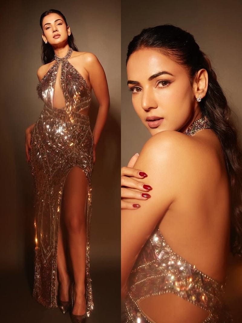 तस्वीरों में देखा जा सकता है कि उन्होंने चमकीली ड्रेस में कई जबरदस्त पोज दिए हैं।