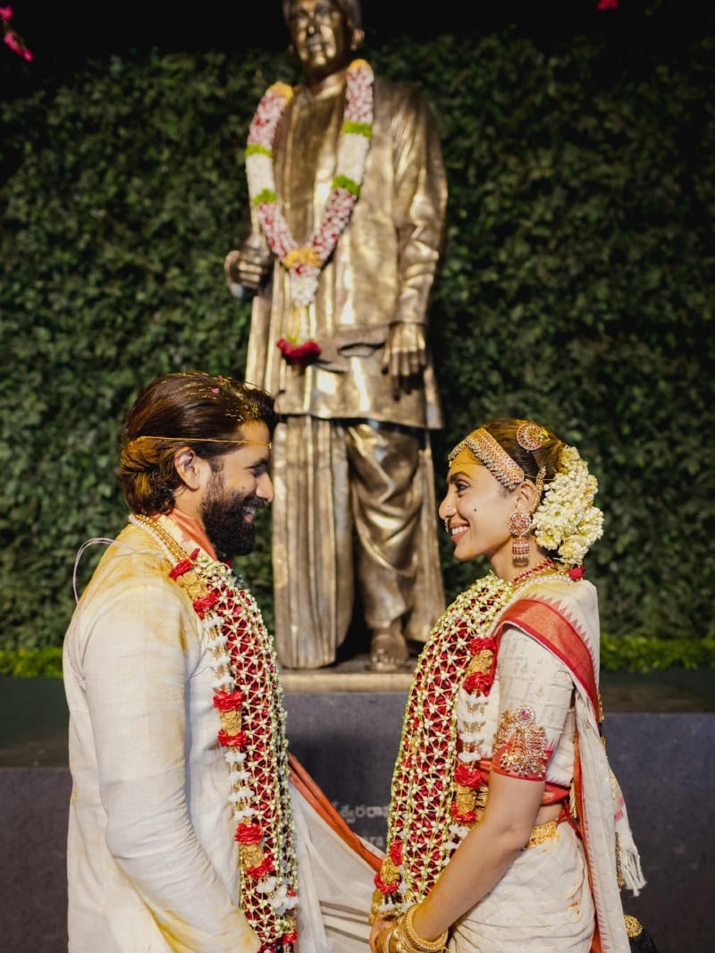 नागार्जुन ने नागा चैतन्य-शोभिता की शादी की अनदेखी तस्वीरें की साझा नागार्जुन ने हाल ही में अपने बेटे नागा चैतन्य और अभिनेत्री शोभिता धुलिपाला की शादी की नई तस्वीरें शेयर की उन्होंने इसके साथ एक भावनात्मक धन्यवाद नोट भी लिखा, जिसमें उन्होंने सभी फैंस, शुभचिंतकों और मीडिया का आभार व्यक्त किया नागार्जुन ने फोटो के साथ अपने ट्वीट में लिखा, "मेरा दिल आभार से भर गया है। मीडिया का धन्यवाद, जिन्होंने हमारे परिवार की गोपनीयता का सम्मान किया। उन्होंने आगे लिखा, "आपने हमें इस खास पल को संजोने का अवसर दिया। आपकी समझदारी और शुभकामनाओं ने हमारी खुशी में चार चांद लगा दिए।" यह जोड़ी 4 दिसंबर को हैदराबाद में शादी के बंधन में बंधी फैंस को दोनों की यह जोड़ी बेहद कमाल लग रही है एंटर