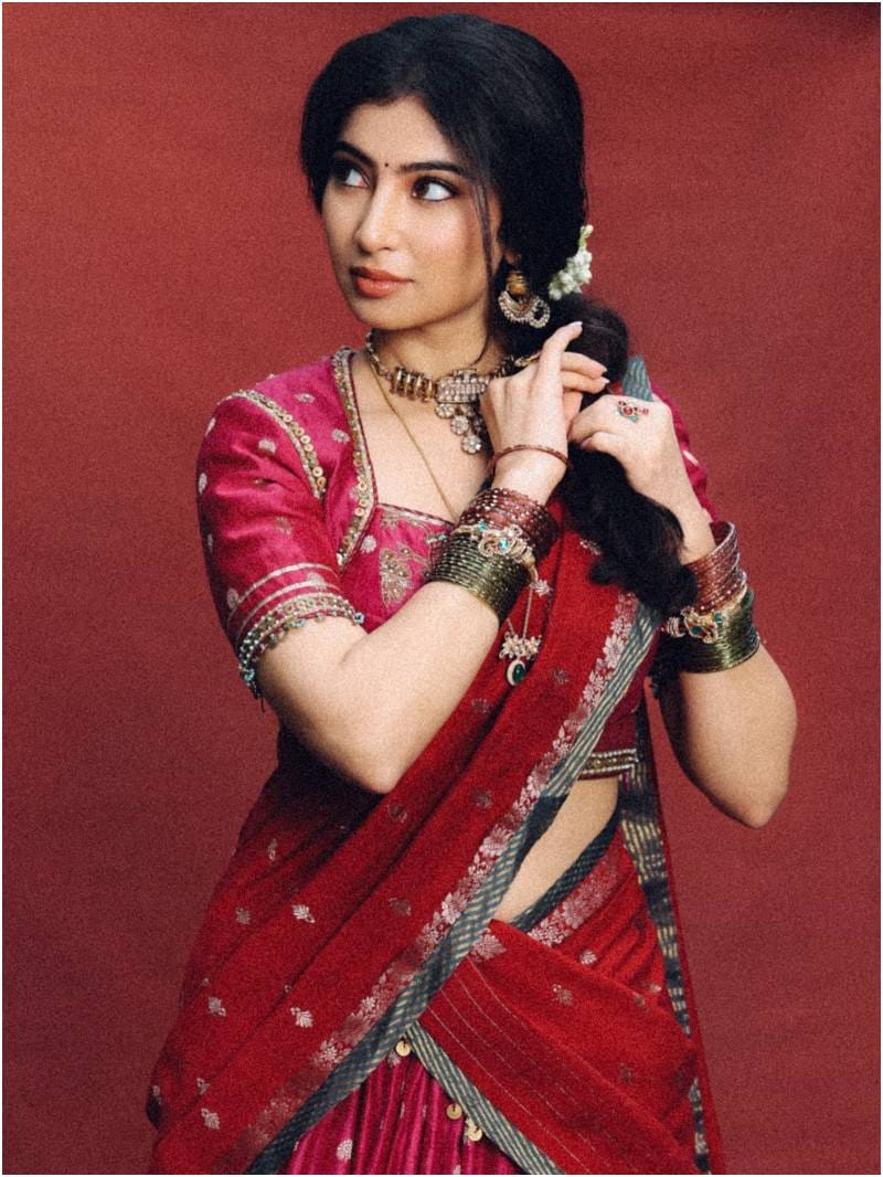 बालों में गजरा, चूड़ी, बिंदी और मेकअप से उन्होंने अपना लुक कंपलीट किया
