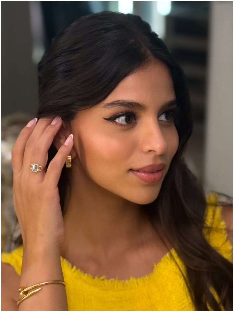 सुहाना जब चमकीले पीले रंग के परिधान में पहुंचीं, तो सभी की निगाहें उन पर टिकी थीं, जिसने कार्यक्रम में चार चांद लगा दिए।