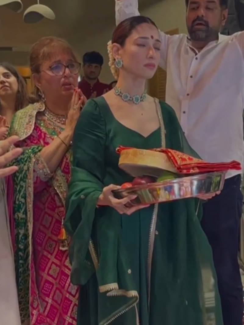 कीर्तन में तमन्ना बालों में गजरा लगाए ग्रीन कलर की ड्रेस में नजर आ रही हैं