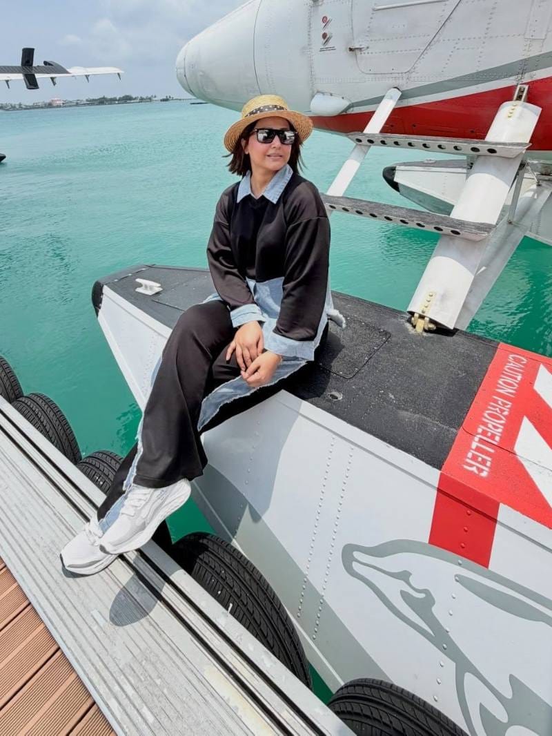 हिना खान ने सैर-सपाटे पर ली स्काई थैरेपी, देखिए तस्वीरें चर्चित एक्ट्रेस हिना खान ने अपनी खूबसूरत फोटोज इंस्टाग्राम पर शेयर की हैं हिना खान हवाई यात्रा के लिए निकली हैं और प्लेन पर फोटोशूट कराते दिखी हैं हिना खान की ये फोटोज उनकी मालदीव यात्रा के दौरान की हैं हिना खान ने कैप्शन लिखा है, 'स्काई थेरेपी' वे बादलों के बीच प्लेन पर स्टाइलिश पोज देती दिख रही हैं नेटिजंस लिख रहे हैं, 'आप बहुत बहादुर हो' -