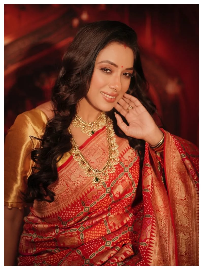 इस नए लुक में रुपाली लाल रंग की साड़ी में बेहद खूबसूरत दिख रही हैं