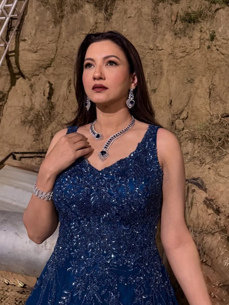 गौहर ने ब्लू रंग के शाइनिंग गाउन में हॉट फोटोशूट कराया है