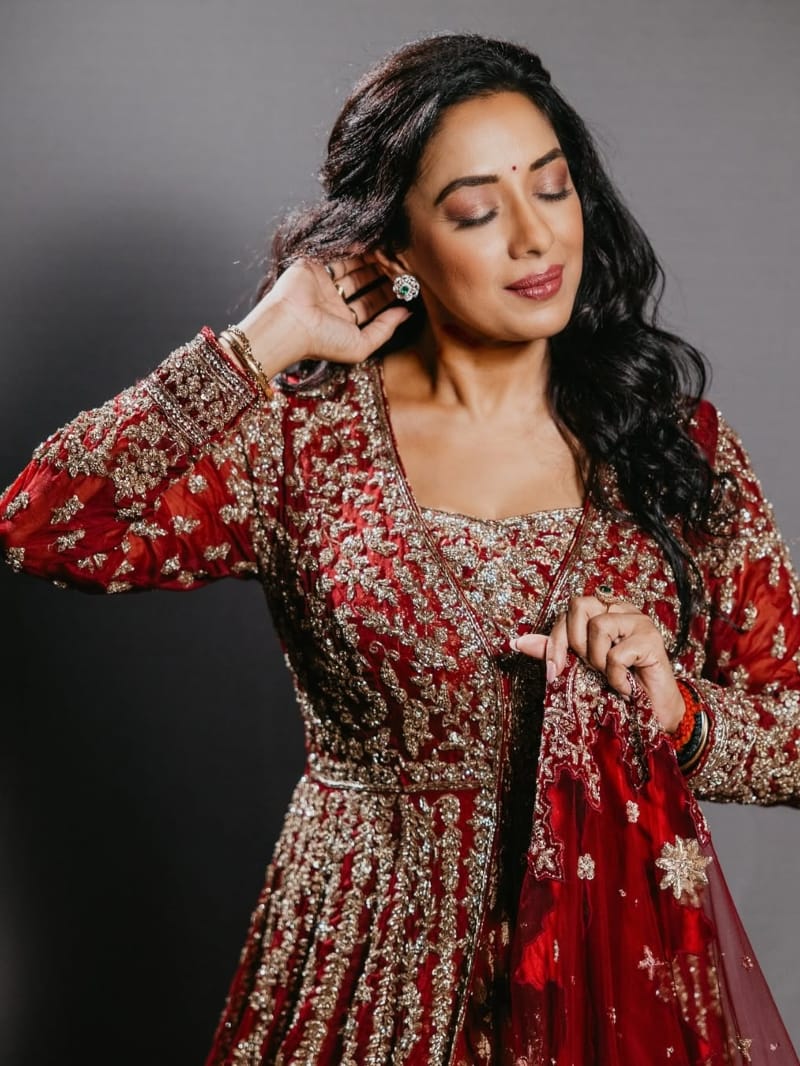 इन तस्वीरों में रुपाली लाल गहरे रंग का हैवी सूट पहने नजर आ रही हैं