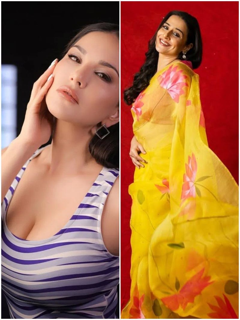 विद्या बालन की बात करें, तो वो यलो कलर की साड़ी में संस्कारी लुक देती नजर आ रही हैं।