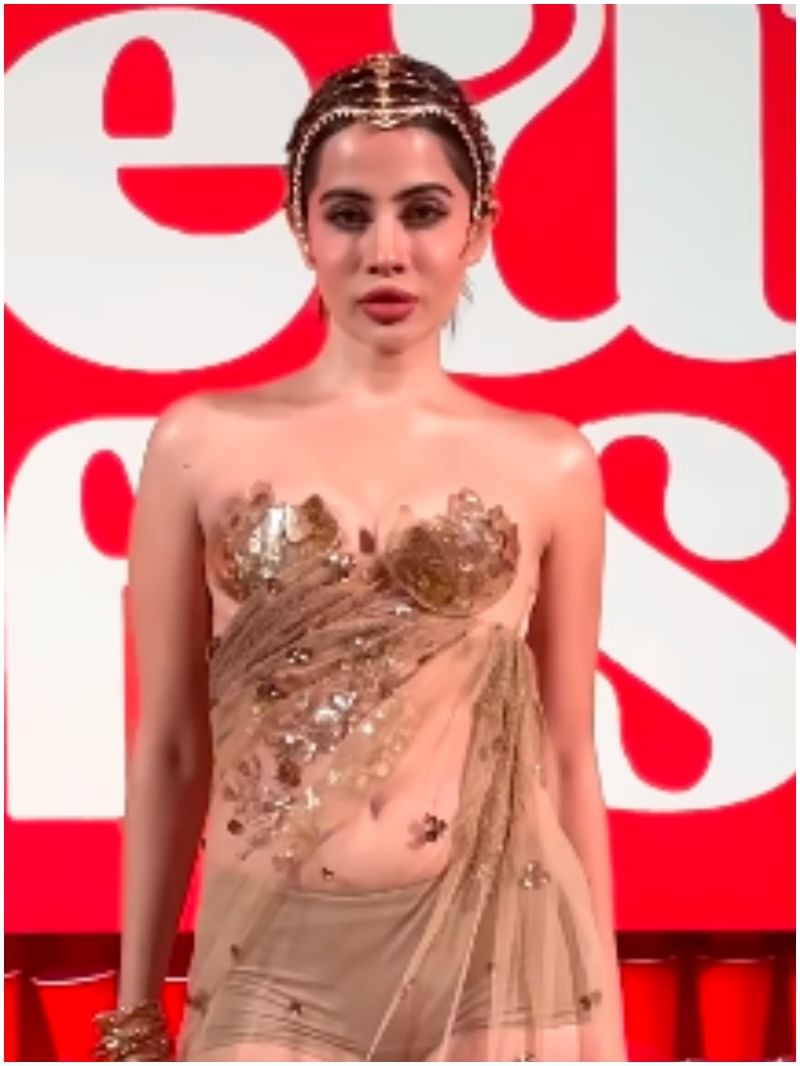 हाल ही में उर्फी को थाई हाई स्लिट ट्रांसपैरेंट ट्यूब गाउन में स्पॉट किया गया