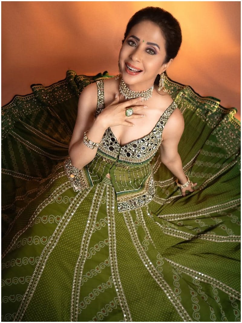 इन तस्वीरों में अभिनेत्री ने ग्रीन कलर का डिजाइनर लहंगा पहन रखा है, जो उनपर काफी खूबसूरत लग रहा है।