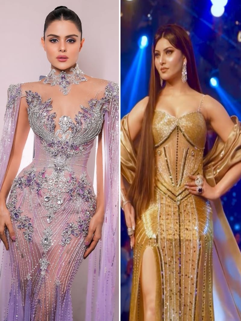 उर्वशी रौतेला ने गोल्डन फ्रंट कट गाउन में बरपाया कहर