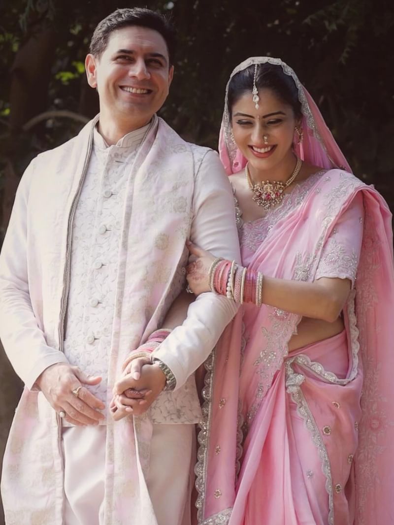 उन्होंने अपनी शादी में बेहद ही खूबसूरत सी गुलाबी साड़ी पहनी थी, जो देखने में कमाल की लग रही थी