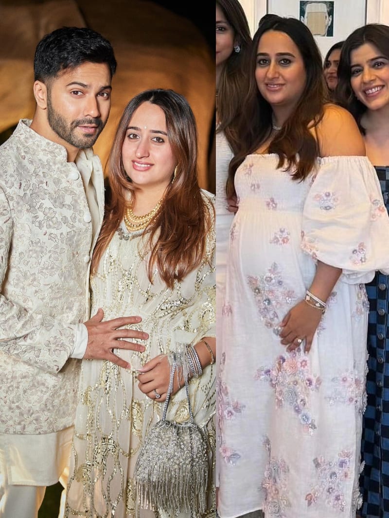 पार्टी में वरुण धवन की पत्नी नताशा बेबी बंप फ्लॉन्ट करती हुई भी नजर आईं