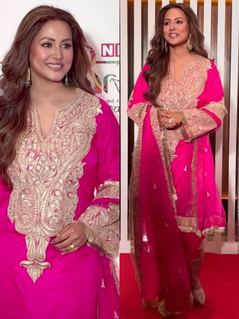 बीती शाम भी एक इवेंट में हिना खान खूबसूरत सा गुलाबी सूट पहनकर पहुंचीं