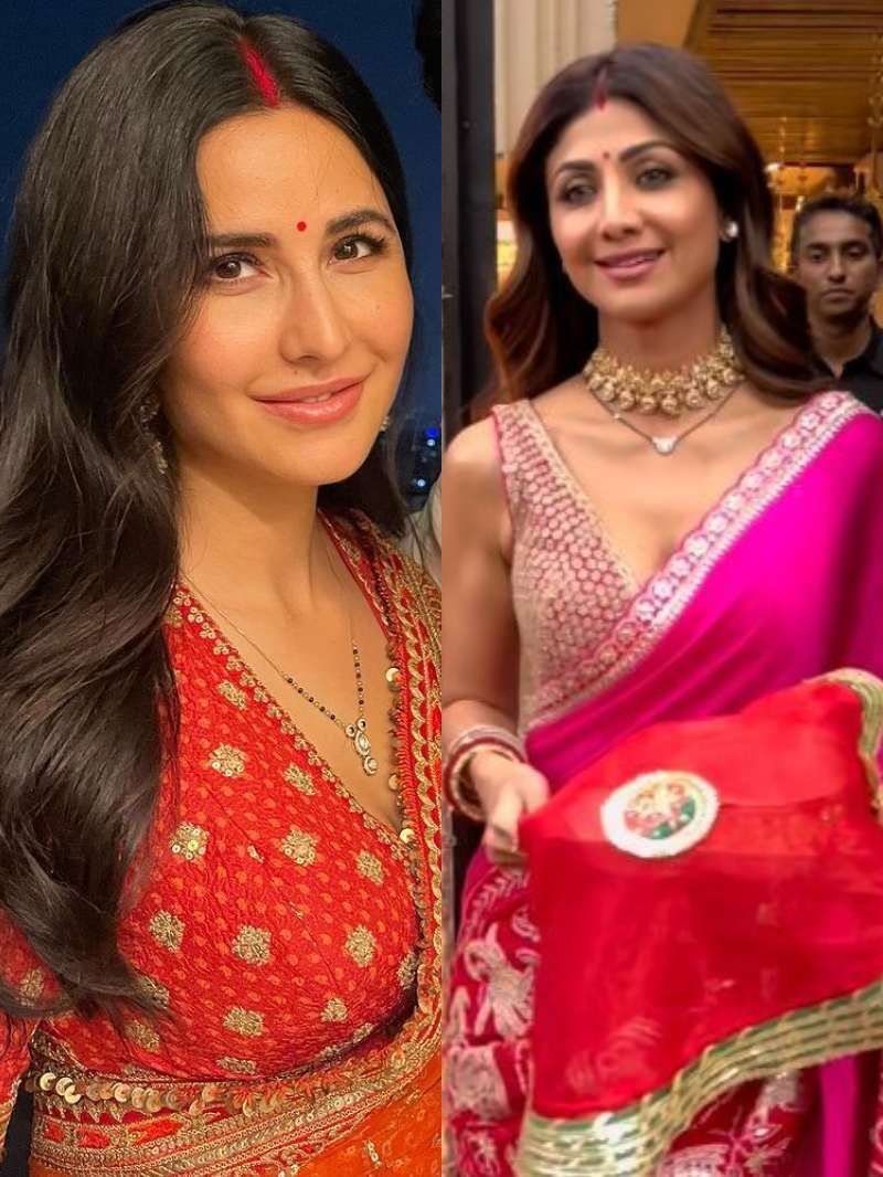 कटरीना ने अपने दूसरे करवा चौथ के दिन लाल रंग की ही साड़ी पहनी थी