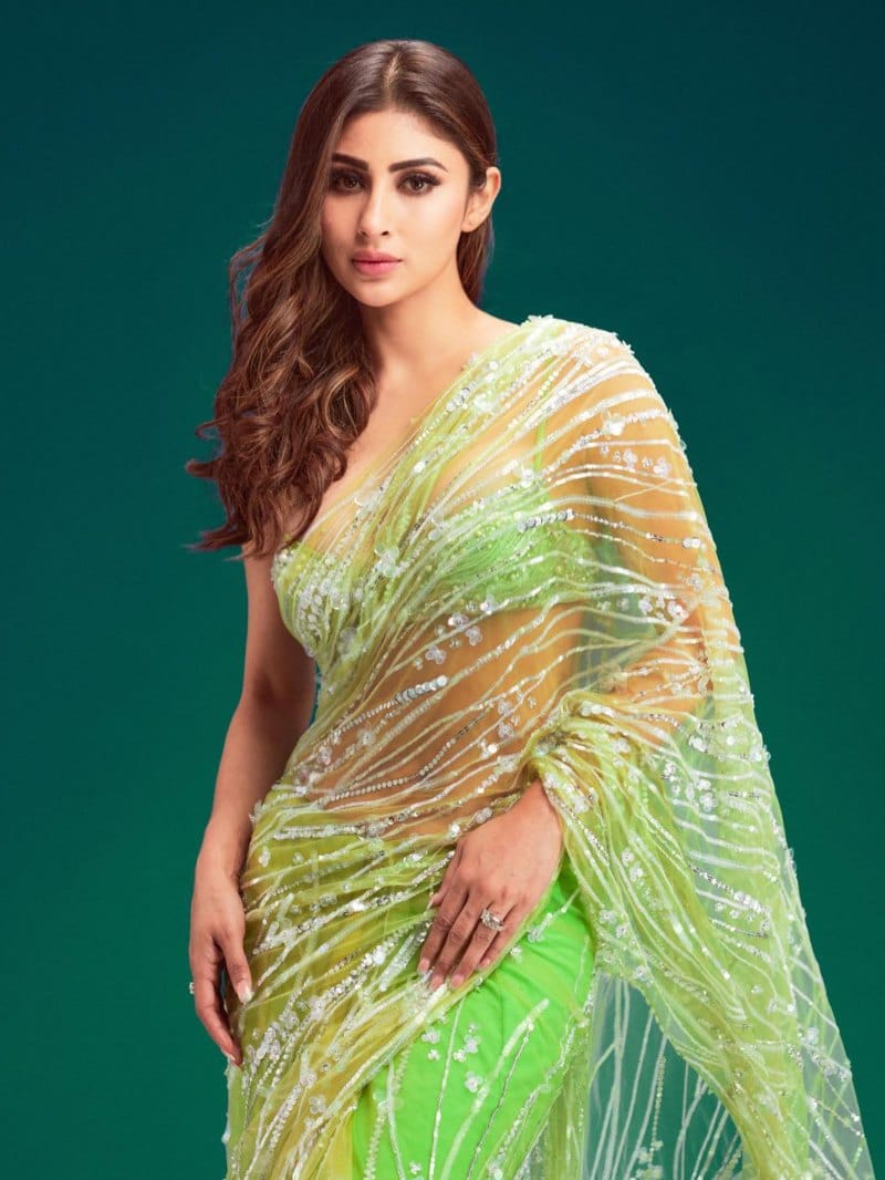 इस ग्रीन ट्रांसपेरेंट साड़ी में मौनी का अंदाज बेहद खूबसूरत लग रहा है