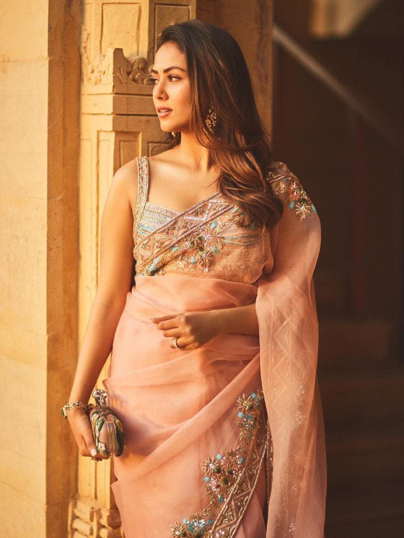 इस पीच रंग की साड़ी में मीरा काफी खूबसूरत दिख रही हैं