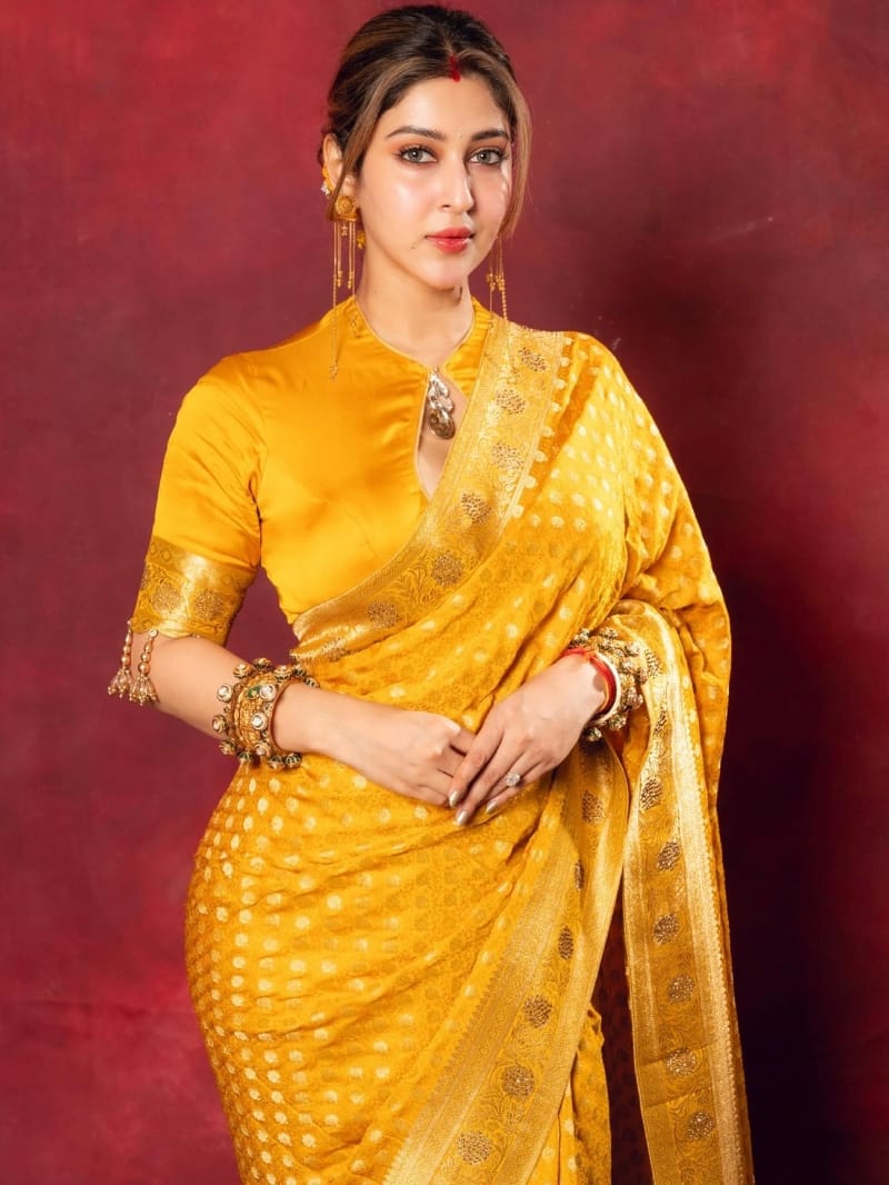 आप इस तरह की पीले रंग की बनारसी साड़ी अपनी शादी के बाद कैरी कर सकती हैं