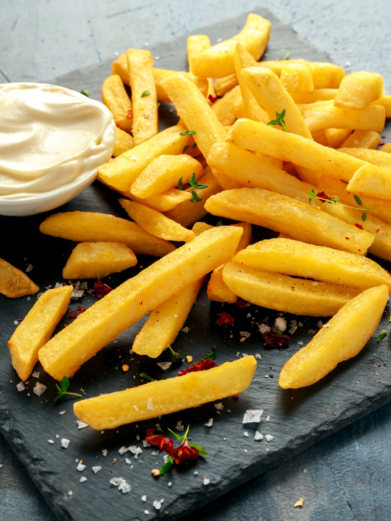अब एक बर्तन में तैयार फ्रेंच फ्राइज को निकाल लें और उसके ऊपर चाट मसाला छिड़ककर सॉस के साथ सर्व करें