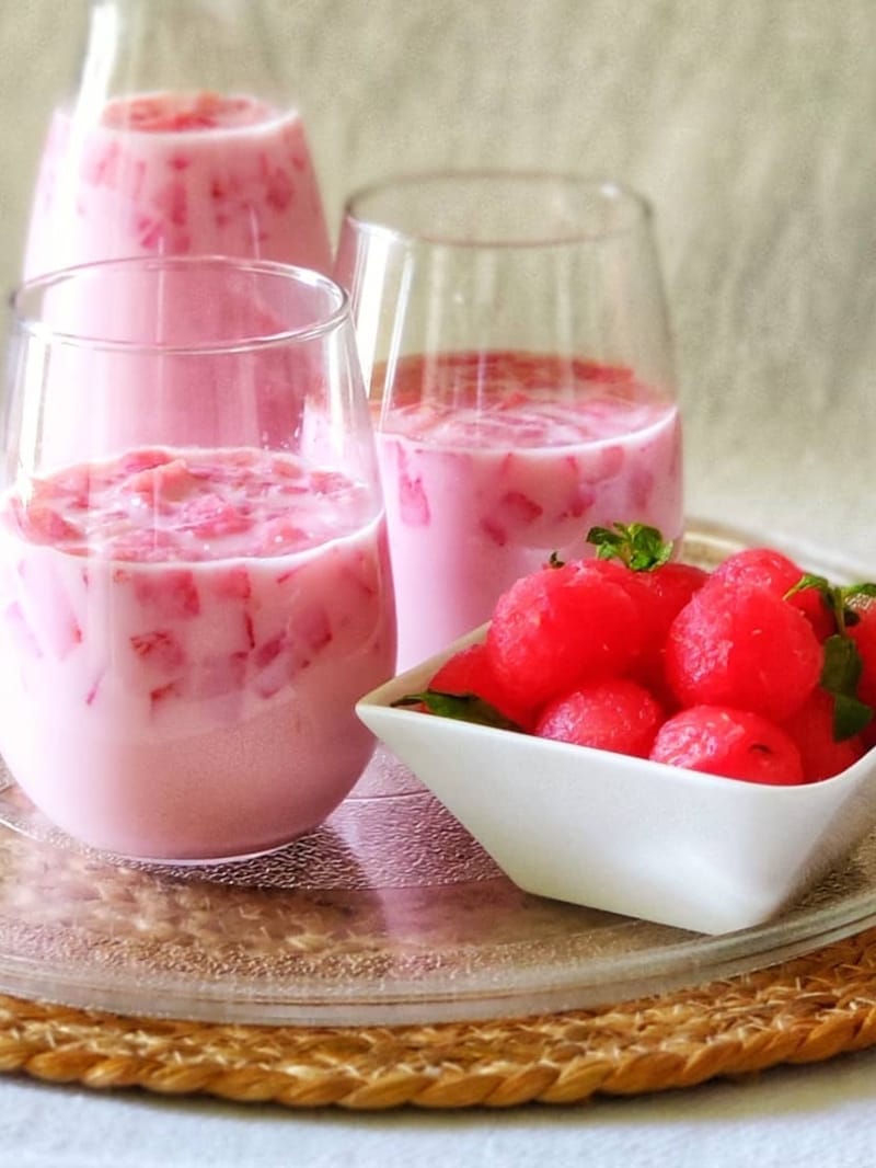 जब दूध का रंग गुलाबी हो जाए तो उसमें तरबूज के छोटे-छोटे टुकड़े काट कर डाल दें