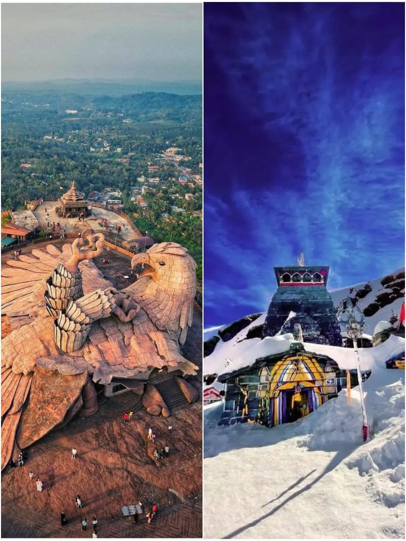 तुंगनाथ से चिनाब ब्रिज तक, इन जगहों ने विश्व को किया हैरान उत्तराखंड का तुंगनाथ दुनिया का सबसे ऊंचा शिव मंदिर है। हिमाचल का बीर बिलिंग एडवेंचर प्रेमियों के लिए विश्व का सबसे ऊंचा पैराग्लाइडिंग स्थल है। केरल का जटायु अर्थ सेंटर दुनिया की सबसे बड़ी पक्षी मूर्ति है। दार्जिलिंग दुनिया की सबसे ऊंची टॉय ट्रेन रूट का रोमांच देता है। पुष्कर मेला में ऊंटों का सबसे बड़ा वैश्विक मेला आयोजित होता है। मणिपुर का केबुल लामजाओ दुनिया का एकमात्र तैरता राष्ट्रीय उद्यान है। अमृतसर के स्वर्ण मंदिर में विश्व का सबसे बड़ा रसोईघर है। आंध्र प्रदेश का नागार्जुनसागर–श्रीशैलम सबसे बड़ा टाइगर रिजर्व है। श्रीनगर की डल झील में दुनिया की एकमात्र तैरता पोस्ट ऑफिस है वाराणसी दुनिया का सबसे पुराना जीवित शहर है। कश्मीर का चिनाब ब्रिज दुनिया का सबसे ऊंचा रेल ब्रिज है। स्टैच्यू ऑफ यूनिटी दुनिया की सबसे ऊंची प्रतिमा है। लाइफस्टाइल